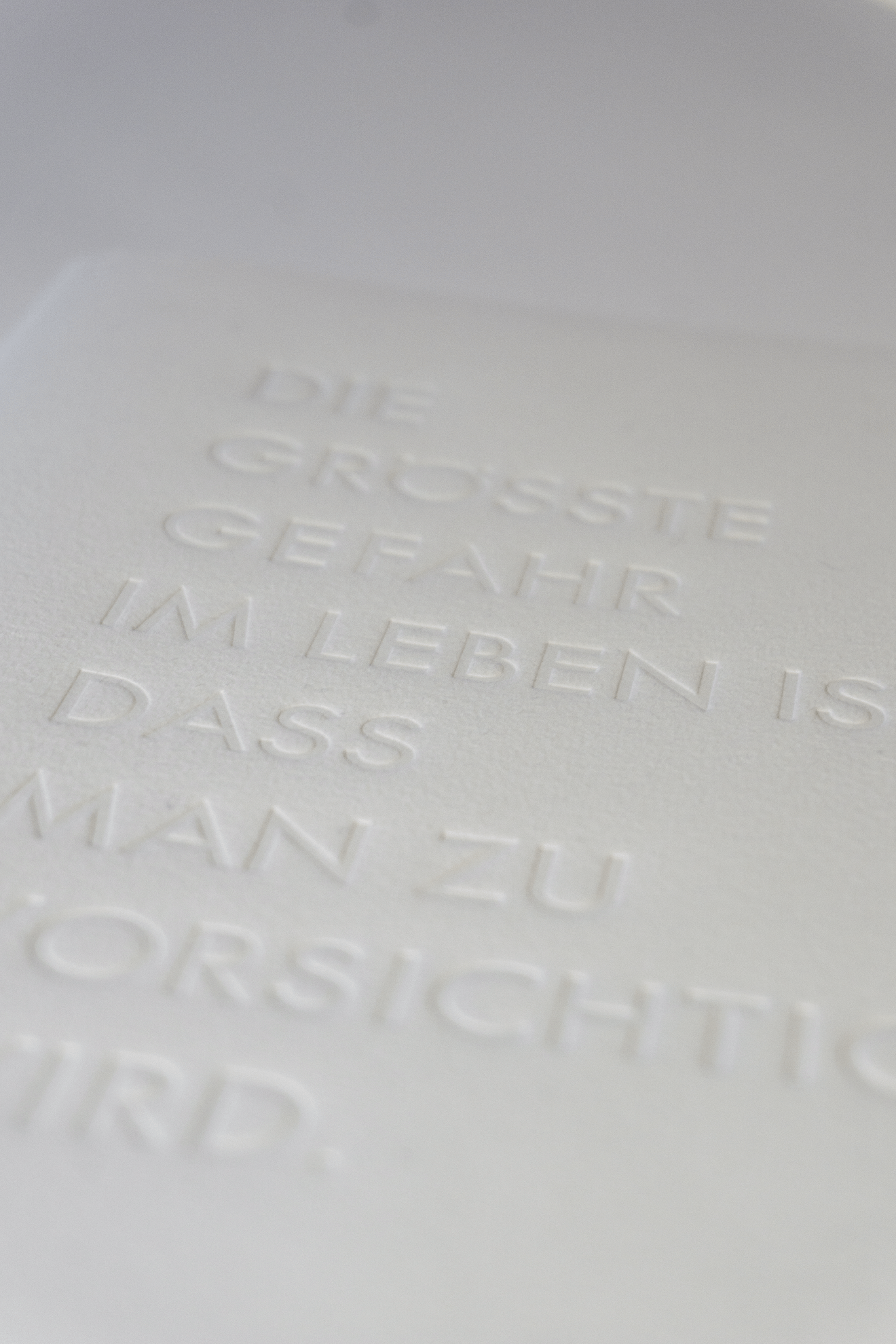 In this group project it is all about one sentence drawn from a fortune cookie: The greatest danger is that you become too careful. We as a group of three focused on the meaning of this sentence. It is stamped on the paper with a lead set roller and on every page a different part is highlighted by only using colour for specific characters or words. You will notice that one wise sentence can have so many different messages or meanings if you only look closer or change perspectives.